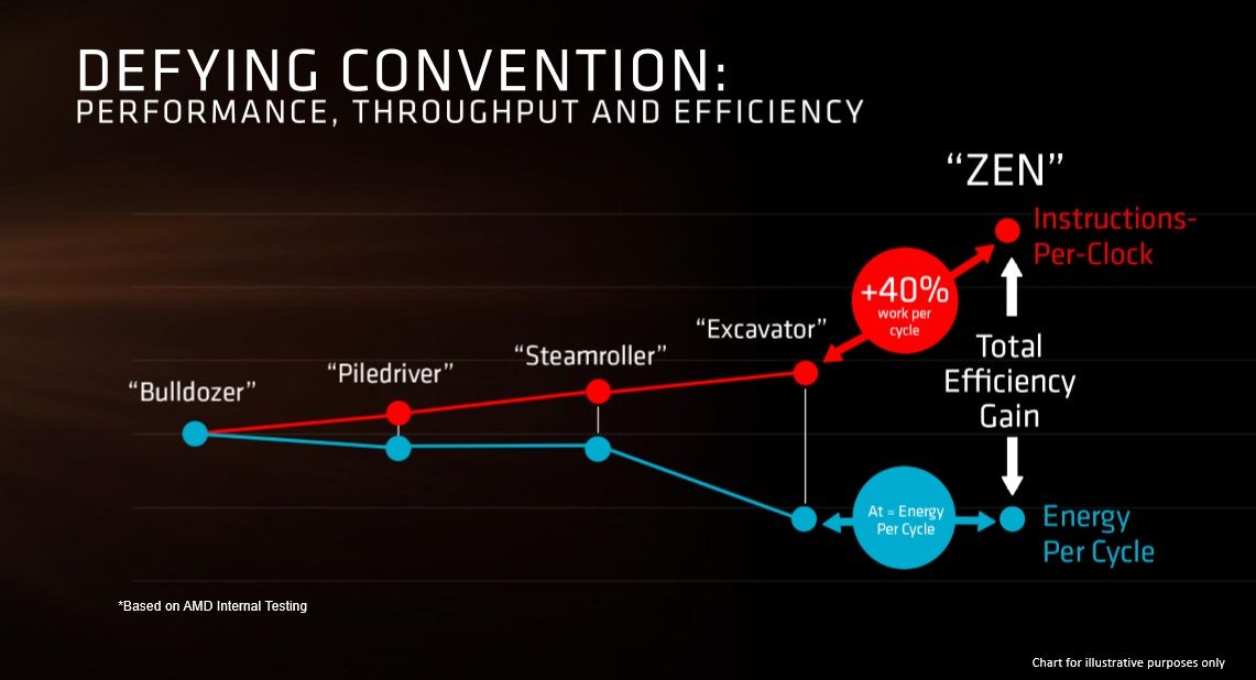 Gracias al salto al proceso de 14nm y al esfuerzo de AMD ZEN abre las puertas a procesadores de ocho núcleos y 16 hilos con un TDP de 95W, mientras que los modelos equivalentes de Intel se sitúan en 140W.