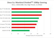 En general todas las soluciones Radeon logran mejorar el rendimiento en Deus Ex: Mankind Divided bajo DirectX 12, cosa que no sólo no ocurre en las GTX de NVIDIA sino que además el cambio a dicha API tiene efectos negativos, tanto que en algunos casos la reducción de fotogramas por segundo llega a ser muy grande.