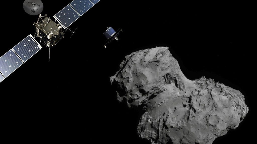 La nave Rosetta fue puesta en órbita en 2004 y desde 2014 estuvo mandándonos información del cometa 67P/Churyumov-Gerasimenko, conocido popularmente como «patito de goma» por las semejanzas que presenta con dicho juguete.