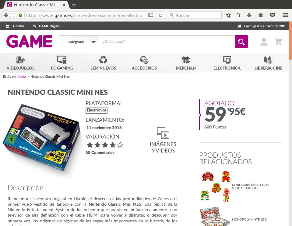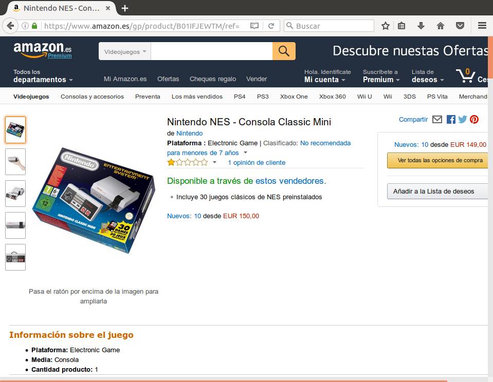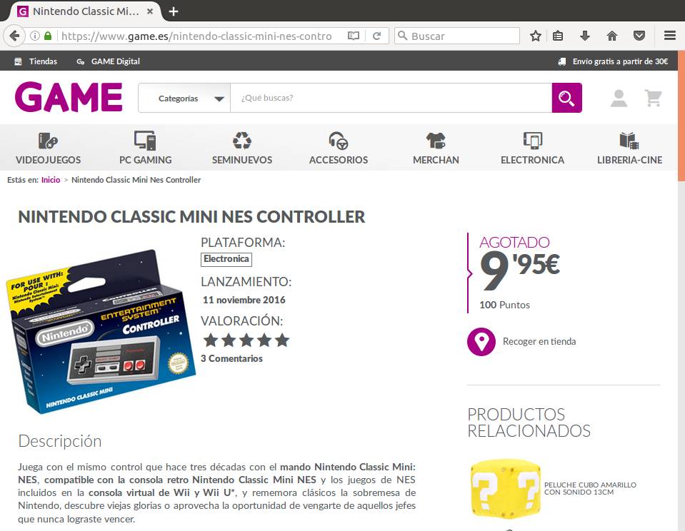 Los mandos adicionales tampoco se libran de la especulación. A pesar de que su PVP recomendado es de 9,95 euros, la unidad de este producto en Amazon ha llegado a alcanzar el precio de 60 euros debido a la alta demanda. Sin embargo, aquí hay alternativas, ya que NES Mini permite la utilización de los mandos Classic Pro Controller de Wii y Wii U.