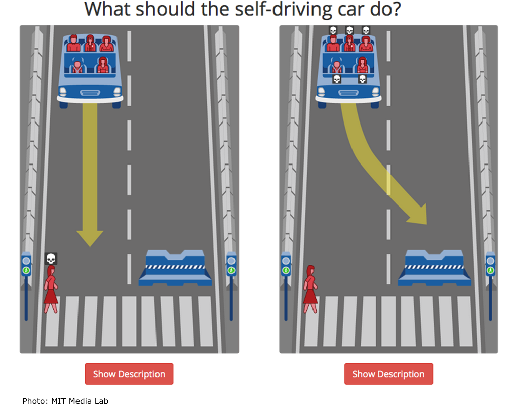 moral-machine_mit-media-lab ¿Es mejor atropellar a la mujer que cruza o tener un accidente?