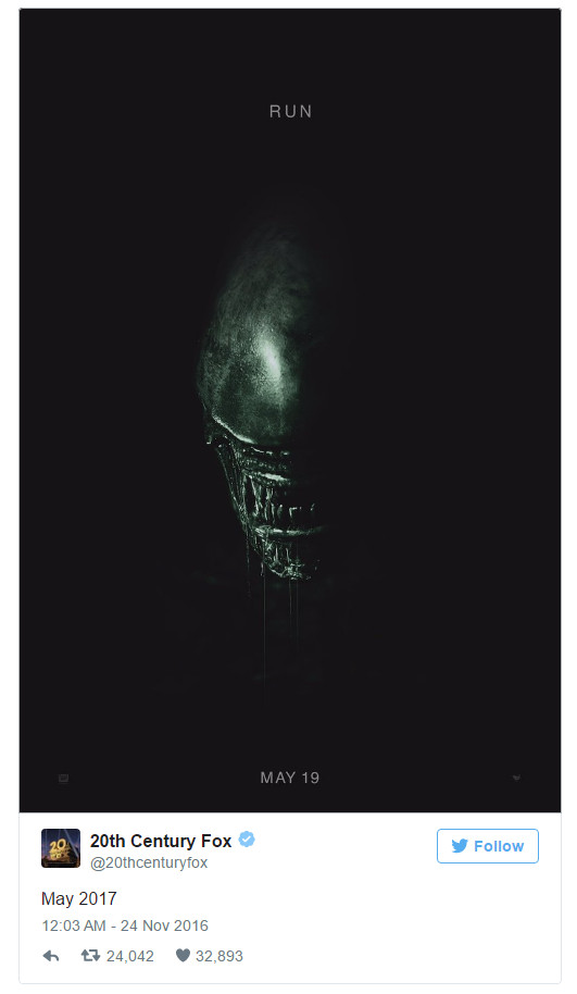 Alien: Covenant es la película continuación de Prometheus y se estrenará en la gran pantalla el 19 de mayo, según anuncia 20th Century Fox junto a la presentación de un póster tan frío y negro como el mismo universo que recrea.