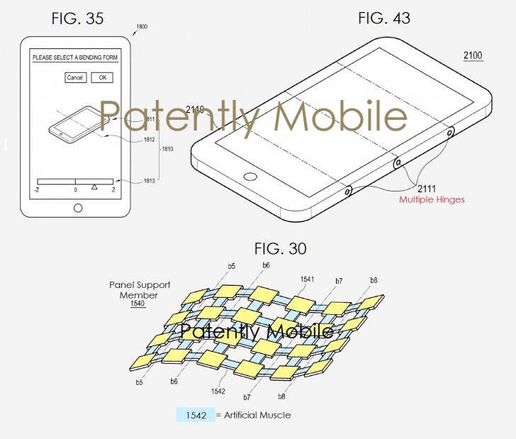 Como podemos ver en las imágenes de la patente, que ha sido concedida a la división Samsung Display, tenemos una capa especial que actúa casi como un músculo artificial, la cual está formada por un tipo especial de plástico y cuenta con una película de elastómero dieléctrico, un conjunto que podría transformar la energía eléctrica en movimiento.