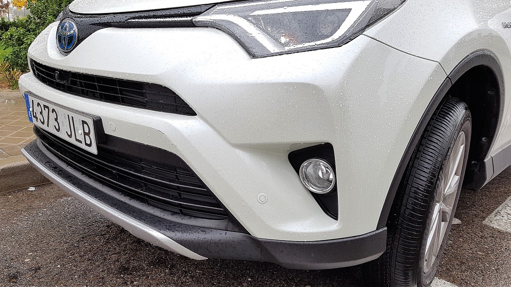 El Rav4 híbrido no se distingue exteriormente del resto de variantes de este modelo más que en los logos que lo identifican. Es un todocamino de diseño moderno que pertenece a la categoría que podríamos denominar como SUV de tamaño medio que comparte con modelos como el Renault Kadjar, el Mazda CX-5 o el Ford Kuga. Las líneas tienen un aire de familia que le emparentan con el resto de modelos de la marca japonesa aunque en este caso algo más sobrias y adecuadas a un cross over.