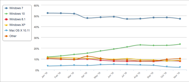 Windows 10 superará a Windows 7 en diciembre de 2017