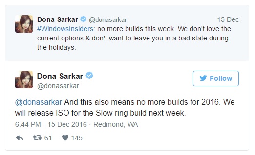 Con todo dado que hablamos del anillo rápido y que las actualizaciones suelen llegar con una regularidad semanal cabe pensar que la nueva build debería llegar antes de mediados de enero de 2017.