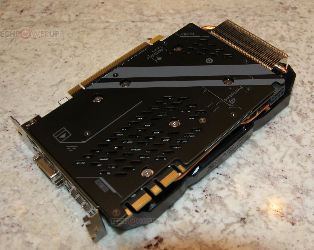A pesar de la reducción de tamaño viene con un pequeño aumento en la frecuencia de trabajo de la GPU, que corre a 1.620 MHz en modo normal y 1.753 MHz en modo turbo. Para alimentarla correctamente necesitaremos una fuente de 500W con un conector de 8 pines y 32A en el carril de 12V.