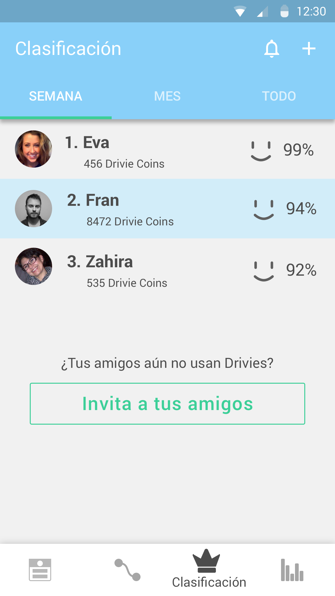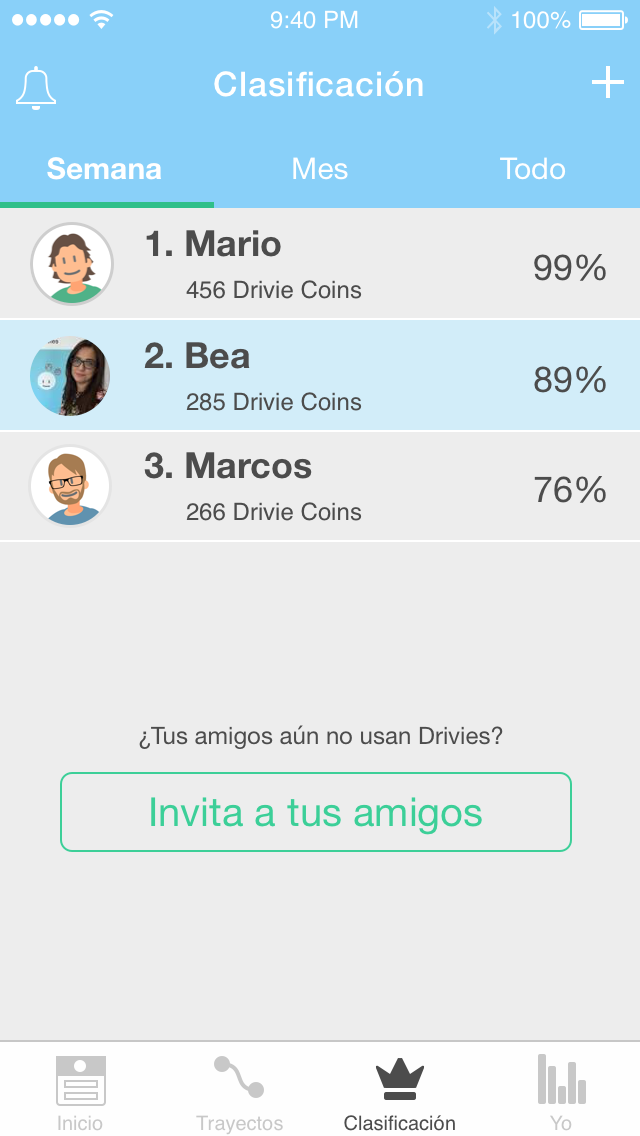 Con DRIVIES podremos identificarlos fácilmente y corregirlos para ser mejores conductores, e incluso tendremos la ocasión de competir con nuestros amigos y contra otros usuarios para liderar el ránking semanal.