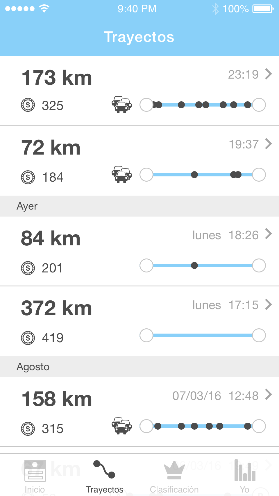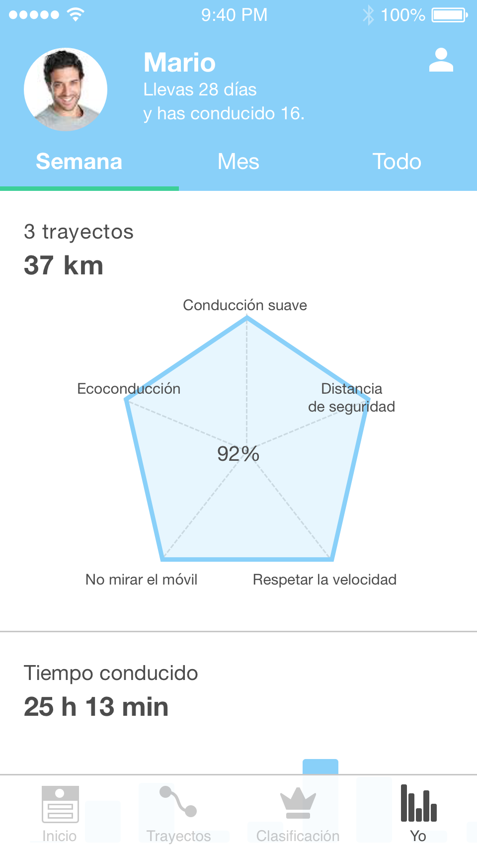 Una vez que la hemos descargado podremos activarla y empezar a usarla. La aplicación utilizará los sensores de nuestro smartphone para analizar los hábitos de conducción y nos mostrará los resultados que vayamos consiguiendo, creando una especie de registro sobre el que podremos ir mejorando gradualmente.