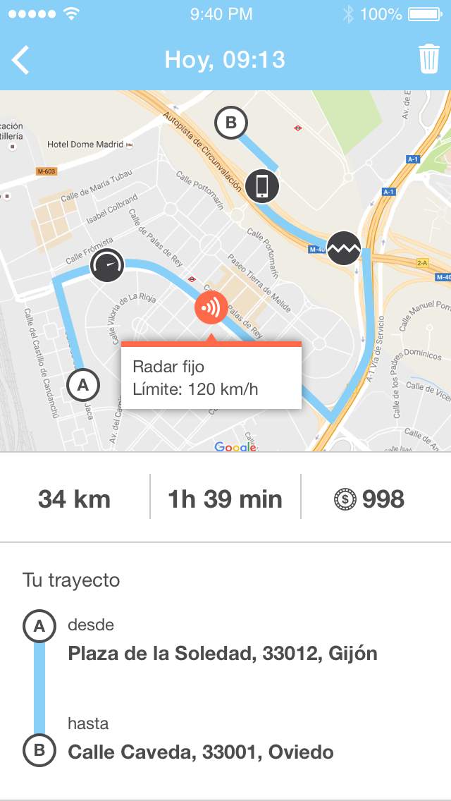 Así, arrancamos la aplicación al iniciar un trayecto y durante el mismo ésta analizará una serie de elementos fundamentales para conseguir una conducción segura, como por ejemplo los frenazos, los excesos de velocidad y si hemos utilizado el móvil durante el mismo.
