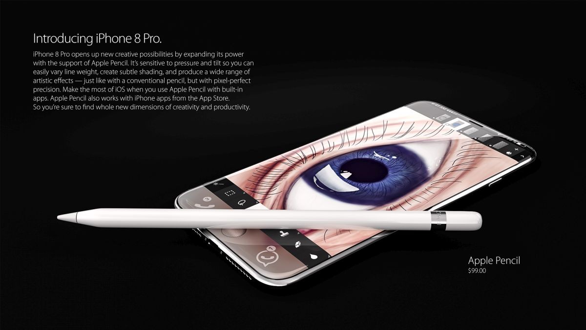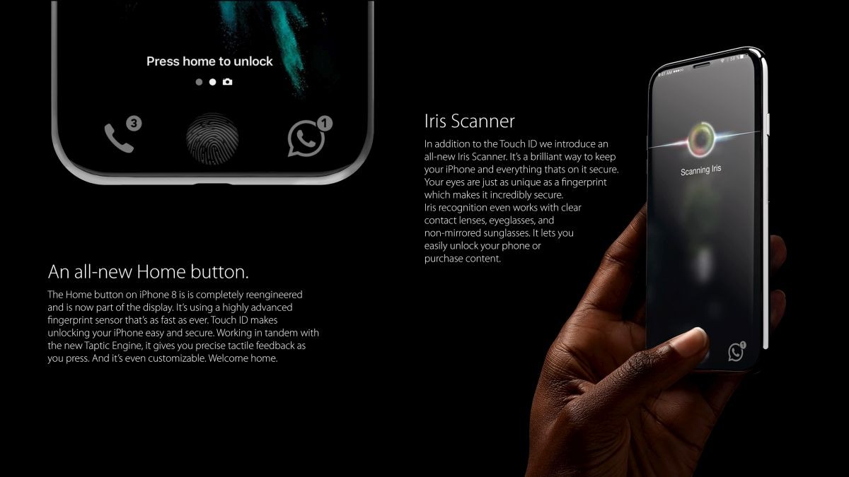 En las imágenes se recogen todas las claves que han ido filtrándose en forma de rumores; acabado en cristal, marco en acero, pantalla de gran tamaño casi sin bordes, ausencia de botones físicos en el frontal, soporte del Apple Pencil y escáner de iris.