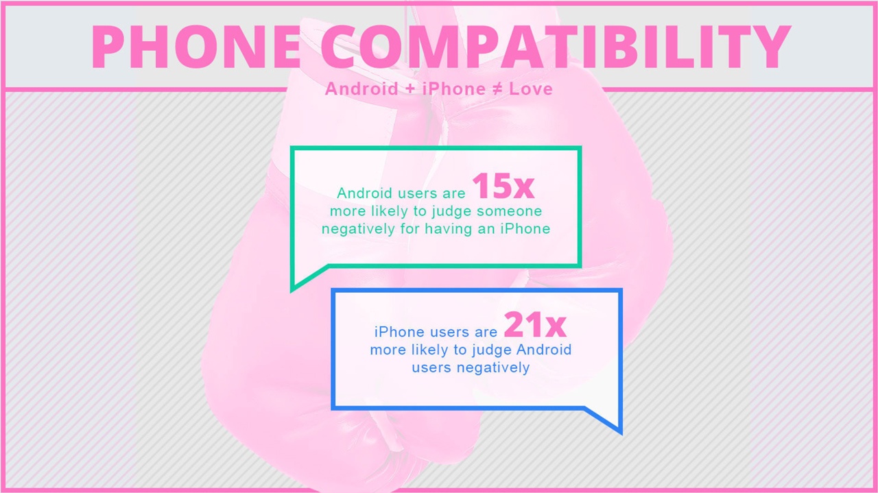 • Los usuarios de iOS son has 21 veces más propensos a prejuzgar negativamente a alguien por tener un Android.
