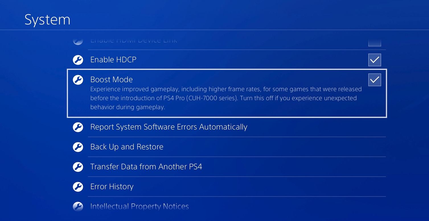 Sin lugar a dudas, la novedad más relevante de la actualización es el modo Boost; así, permite aprovechar la mayor velocidad de la CPU de PS4 Pro y maximiza el rendimiento de la GPU para tener una configuración más equilibrada y conseguir mejoras en muchos juegos, aunque no tengan parche dedicado. Los resultados dependen de cada título pero, en términos generales, las mejoras son notables; mejor tasa de frames, menor tiempo de carga, más estabilidad. Hablamos de ello con detalle aquí.