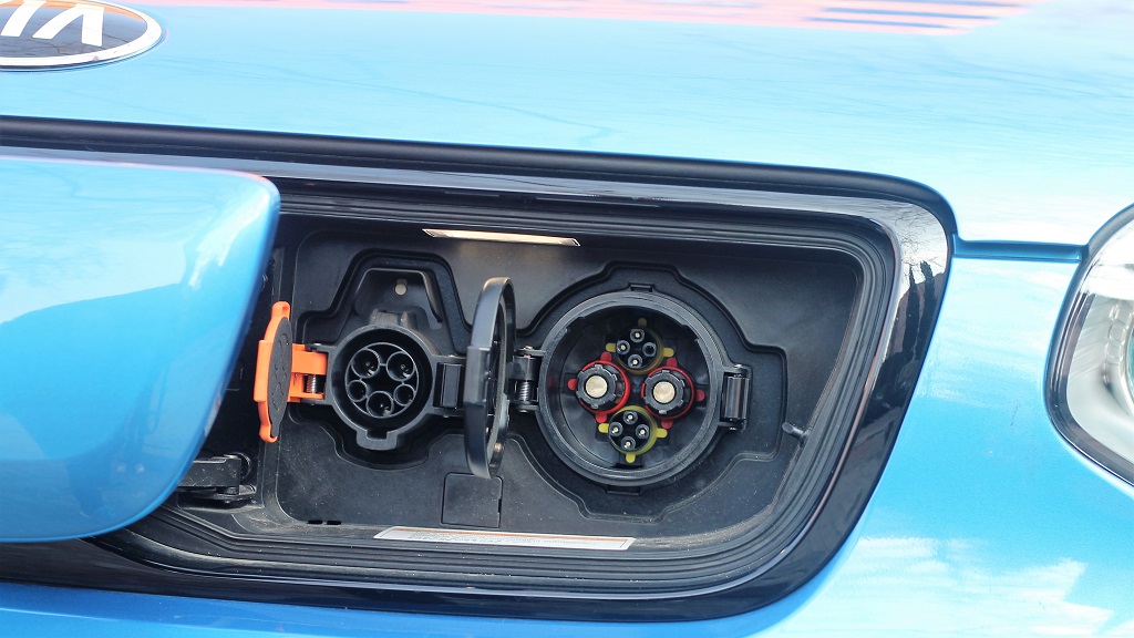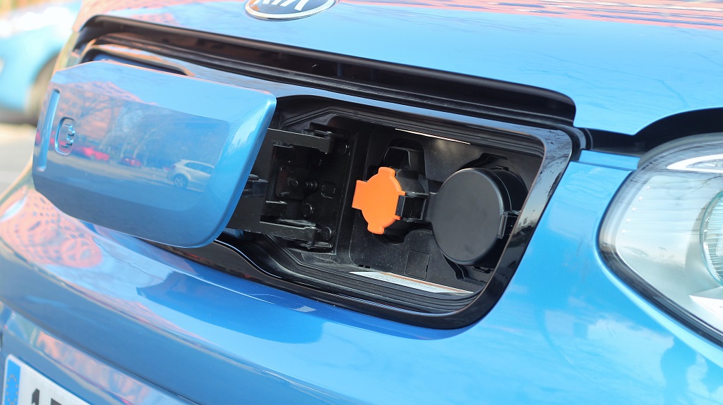 El caso es que tiene apariencia de coche urbano de líneas agradables y prácticas, tan alto que puede pasar por SUV pero con un enfoque de uso más parecido al de un pequeño monovolumen. El modelo que probamos tiene el techo de color distinto al resto de la carrocería lo que le da un toque simpático y desenfadado. En la parte frontal enseguida se distingue la diferencia con sus hermanos de motor de explosión ya que la parrilla del radiador no está siendo sustituida por un panel de plástico que, como vermos, oculta los conectores de carga.