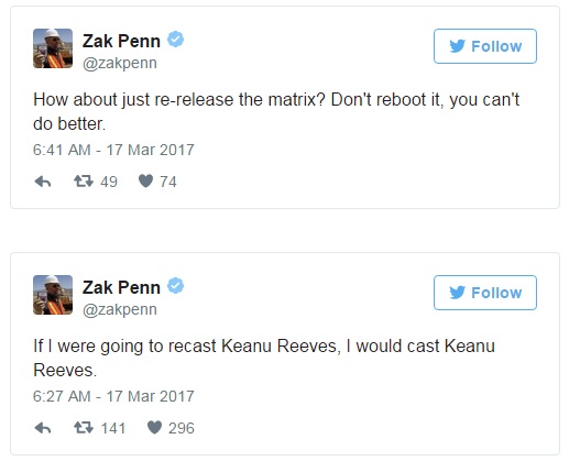 Sabemos que hay un proyecto para sacar adelante una nueva película de Matrix y ya hemos podido ir viendo algunos detalles interesantes al respecto, pero la polémica que ha surgido alrededor de la misma ha obligado a Zac Penn, el jefe del grupo de guionistas que se ocupará del argumento, a lanzar una aclaración tan importante como necesaria.