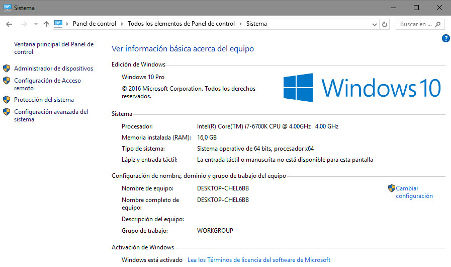 Conocer si tenemos activado el sistema operativo sigue siendo igual de sencillo que en anteriores Windows y una localización que se repite es a través del Panel de control > Sistema: