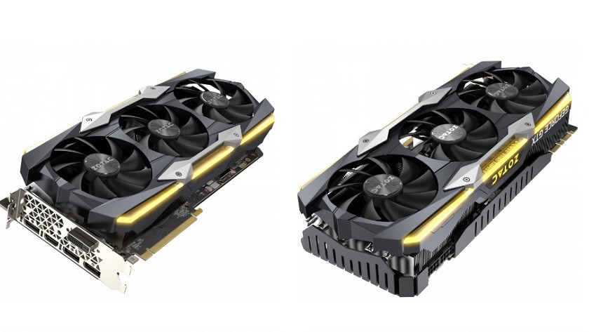 El modelo más potente de la compañía es la ZOTAC GeForce GTX 1080 Ti AMP! Extreme Edition, que eleva las frecuencias a 1.645-1.759 MHz en la GPU, modo normal y turbo, y 11,2 GHz en la memoria. Necesita también dos conectores de 8 pines y tiene un TDP de 320W.