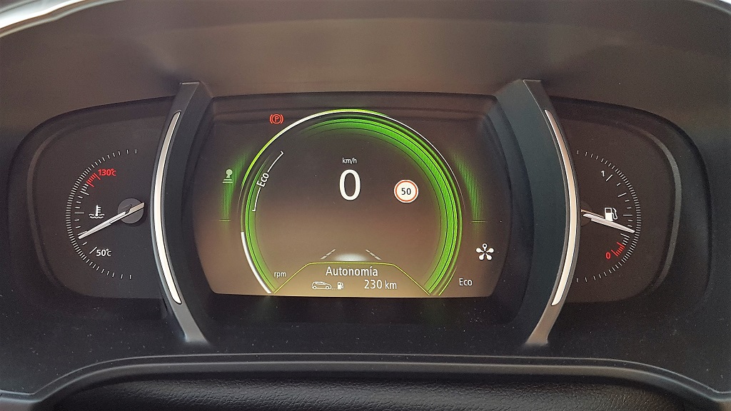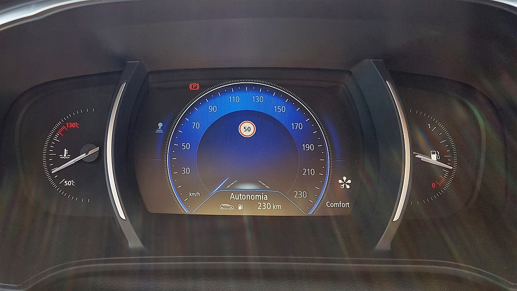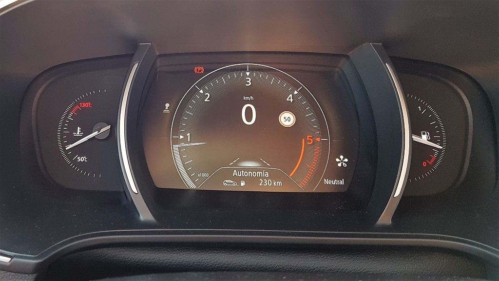 En el centro del salpicadero encontramos la generosa pantalla del sistema R-Link 2 con una pantalla de 8,7 pulgadas en formato vertical. En Renault la llaman «tablet conectada» y ciertamente tiene muchas funciones y sobre todo un formato comparable. Por el tamaño y disposición recuerda al sistema de entretenimiento y conectividad de Tesla, aunque en cuanto a funcionalidades aún queda muy lejos. Es otro elemento que le acerca al Talisman.