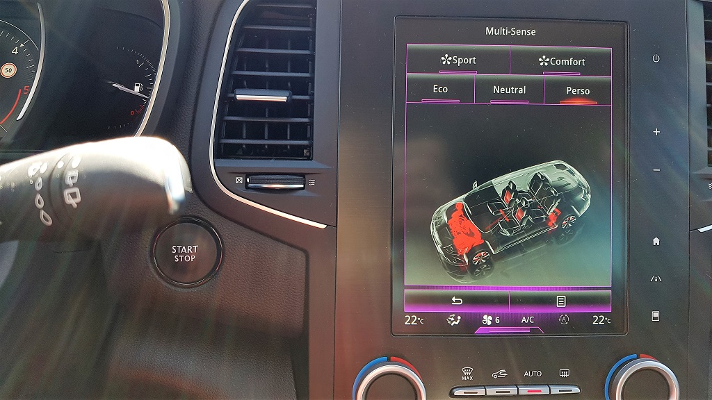 Detalles como la visualización de las distintas modalidades de masaje del asiento o mostrar un croquis del coche en el que se representa en qué partes del coche actúan los distintos modos Multi Sense de funcionamiento del mismo, la excelente visibilidad de los mapas, la posibilidad de dividir la pantalla en dos… Además desde la pantalla podemos controlar de forma clara todos los sistemas de asistencia a la conducción (que son muchos).