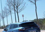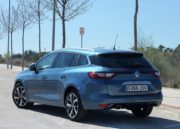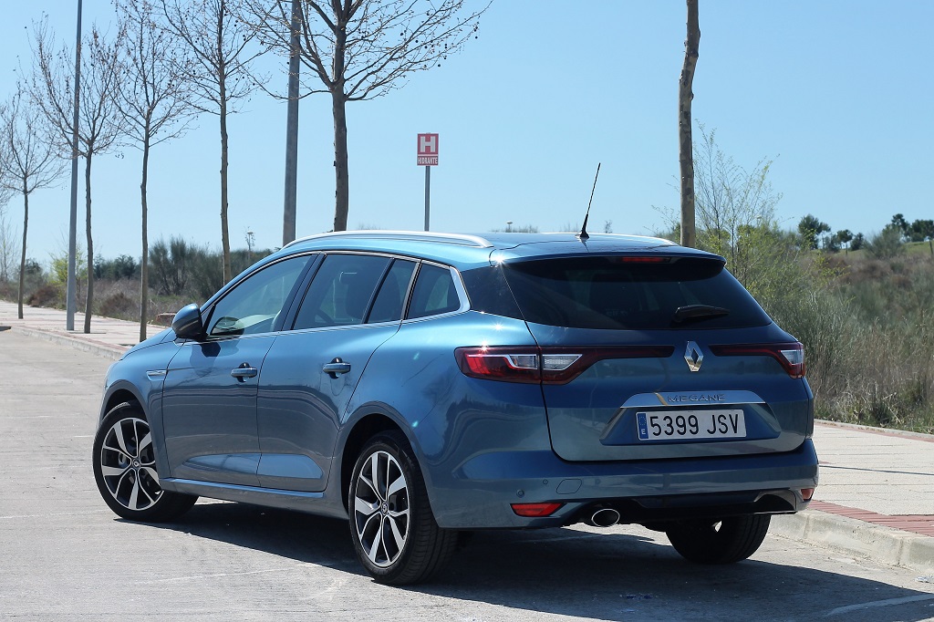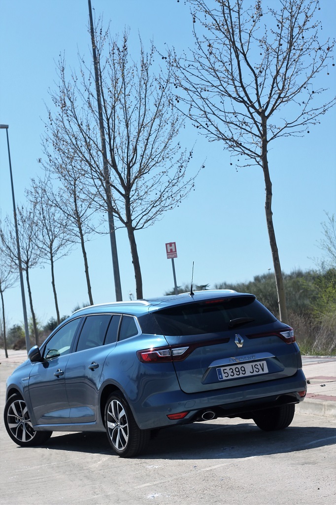 La parte trasera es menos agresiva con el grupo de luces de un tamaño normal que casi se encuentran en el centro del portón donde se coloca el otro símbolo de Renault. Un parachoques bastante generoso soporta por debajo la trasera. En cualquier caso las líneas son modernas y orientadas a huír como es norma últimamente del aspecto más práctico de los familiares de antaño para justificar los apellidos Sport Tourer, Sport Vagon y otros que tanto les gusta a las marcas.