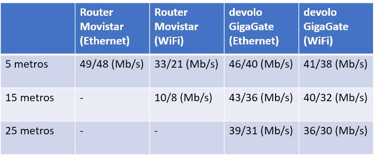 Para probar las prestaciones de dispositivo utilizamos un entorno real, una vivienda de unos 130 metros cuadrados dotada de conexión a Internet por fibra óptica Movistar (50 Mb simétricos). Conectamos el sistema dejando el router del operador y tomamos mediciones en tres estancias diferentes; estos son los resultados: