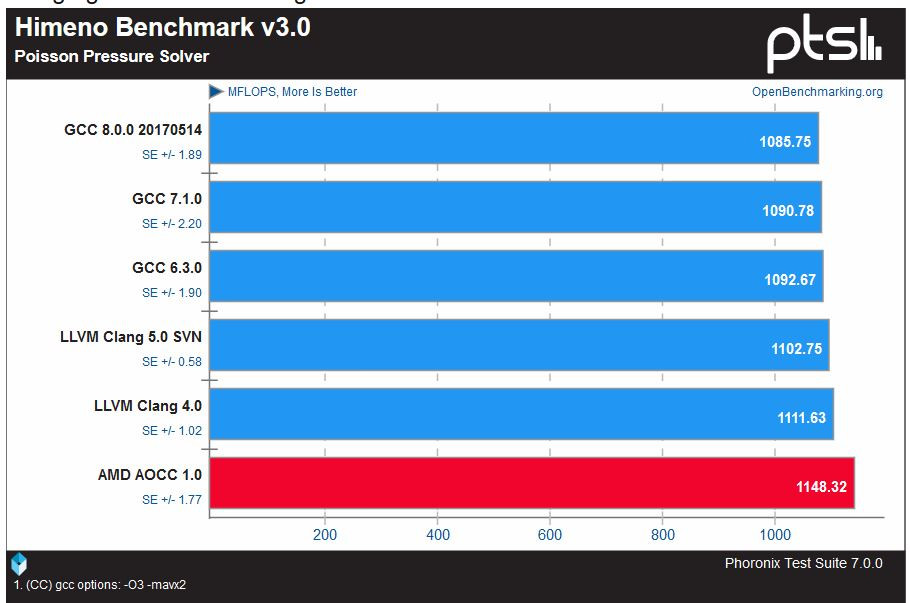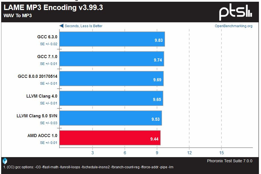 Phoronix ha realizado una completa ronda de pruebas utilizando los nuevos compiladores AOCC 1.0 C/C++ de AMD basados en LLVM Clang, que incluyen una serie de mejoras específicas para aprovechar las capacidades de los nuevos procesadores RYZEN y los resultados hablan por sí mismos.