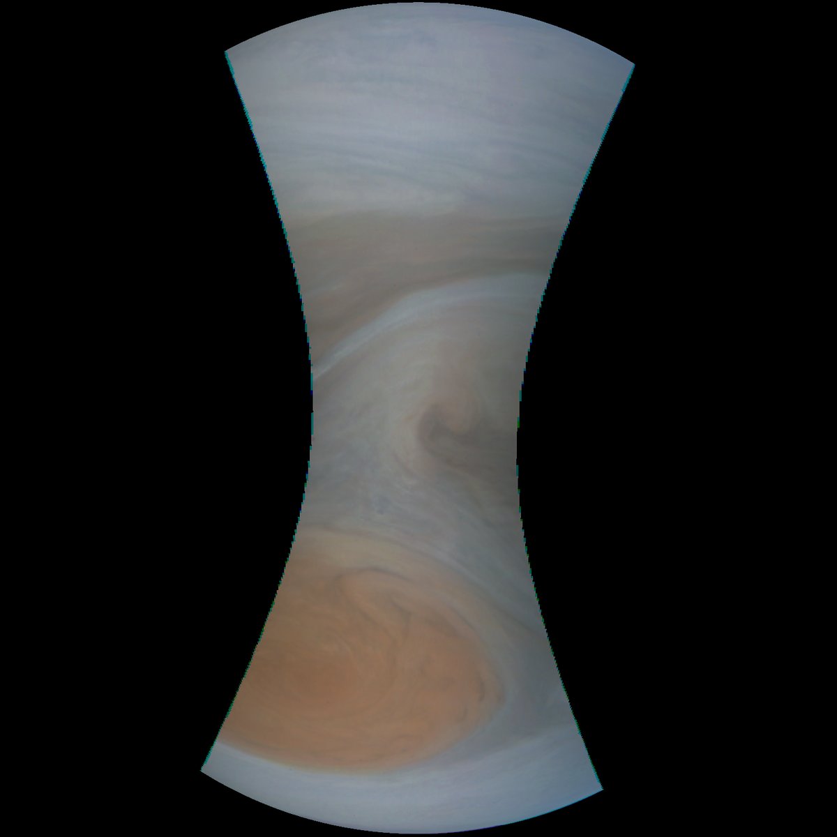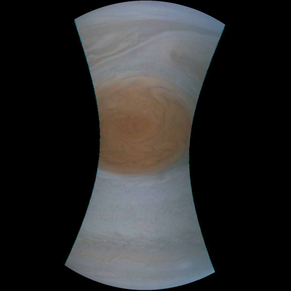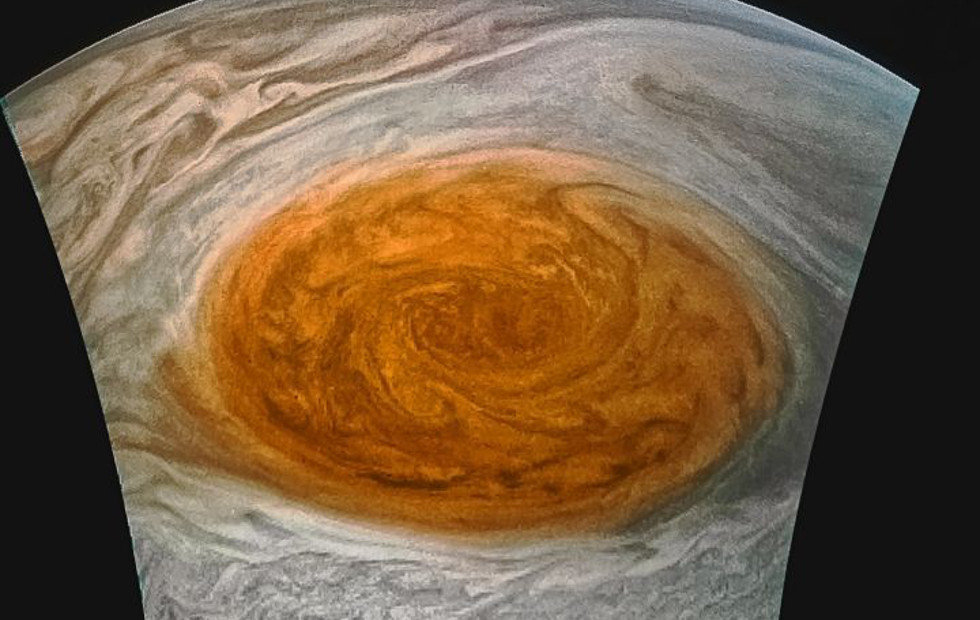 Un vistazo a la gran mancha roja de Júpiter, cortesía de Juno