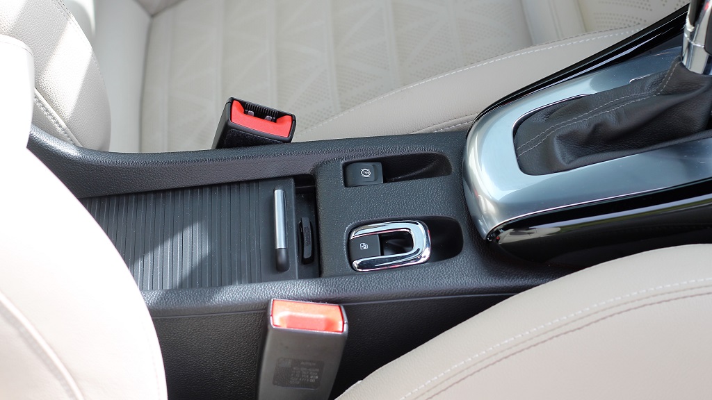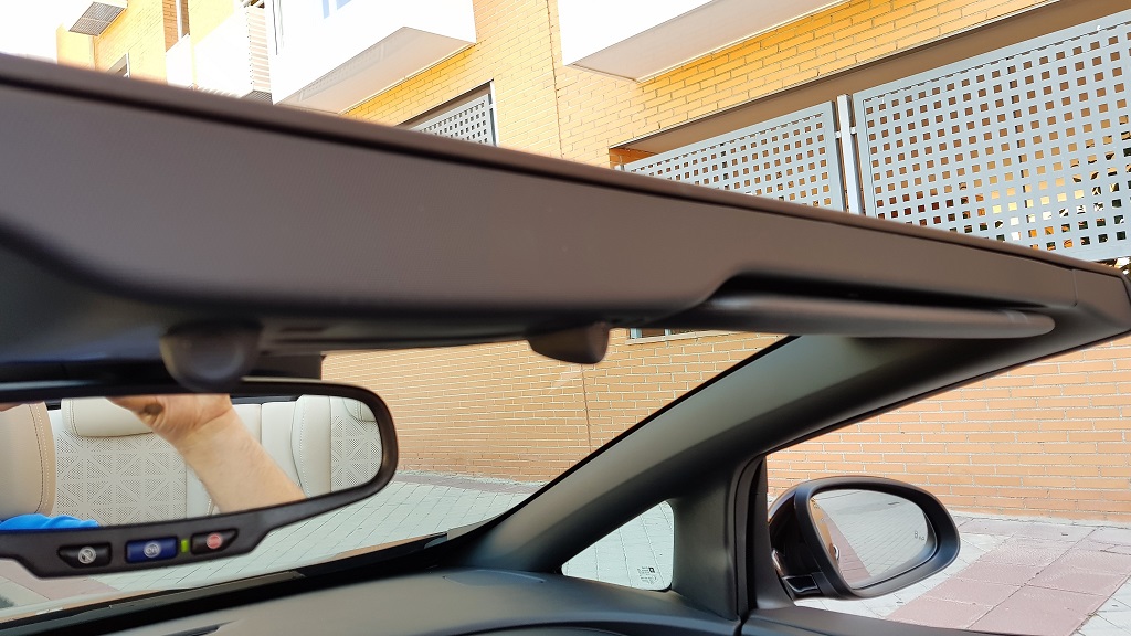 Hay que decir que junto a este accionador se encuentra el del freno de mano y las primeras veces hay que ser cuidadosos no vaya a ser que accionemos una cosa queriendo accionar la otra. La capota se puede accionar en marcha (hasta 50 kilómetros por hora) y todo el proceso dura aproximadamente 17 segundos. Realmente cómodo y sin problemas, siempre que al plegarla hayamos dejado espacio suficiente en el maletero.