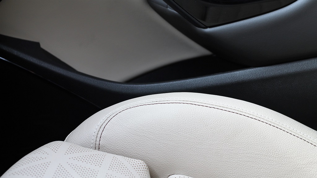 En el interior encontramos cuatro plazas, número máximo que encontraremos en la práctica totalidad de los descapotables, con asientos de cuero de buena calidad. Las pazas traseras son muy cómodas y los asientos envuelven como se espera de un coche que busca la deportividad. Los acabados de los mismos son muy buenos y en la versión que probamos (en realidad el único acabado disponible) ofrecían un sistema de ventilación y calefacción, muy útil en este tipo de coches.