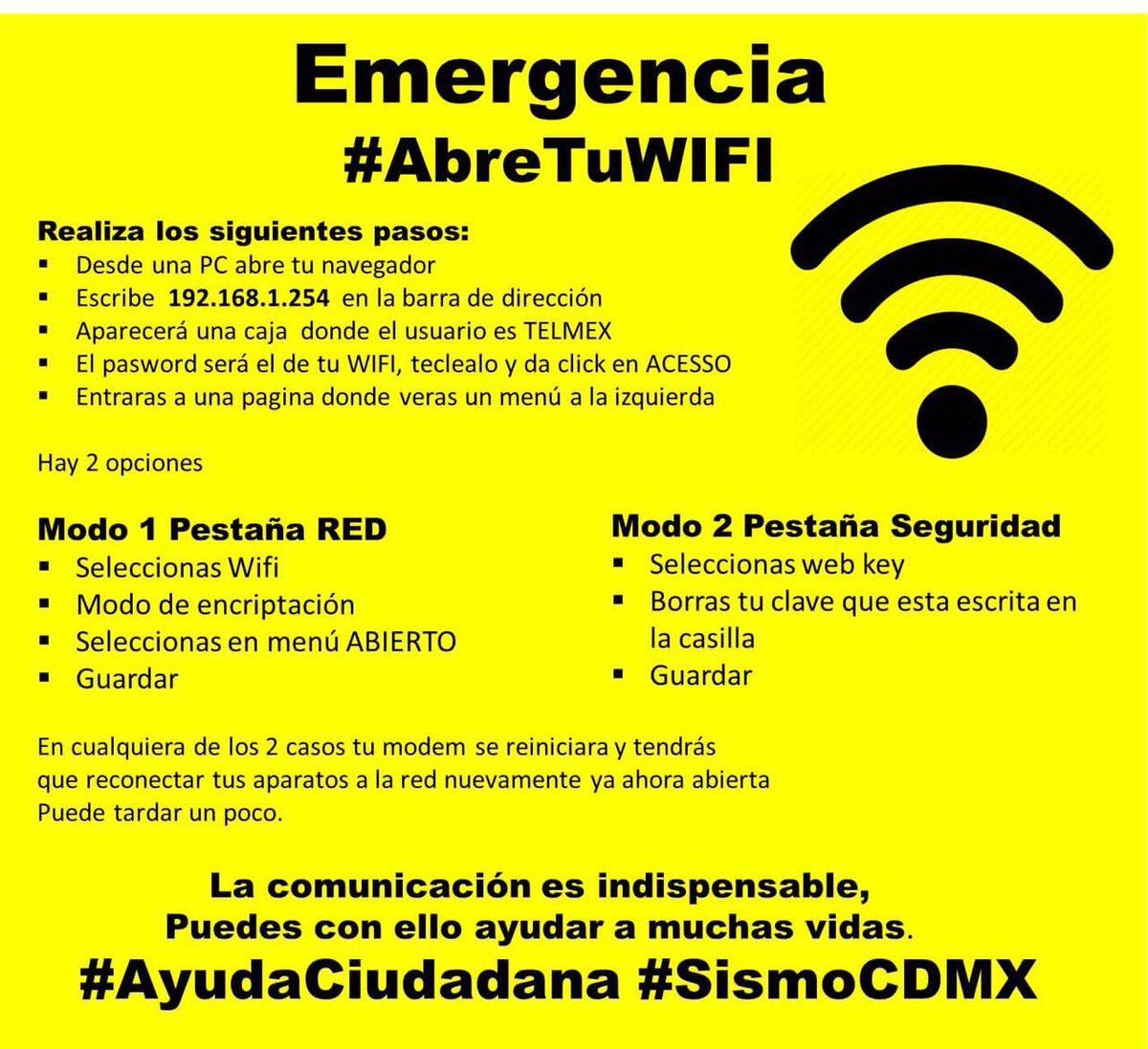 Otro tipo de ayuda solicitada es la apertura de las redes Wi-Fi privadas, muy importante en situaciones de emergencia donde las redes públicas suelen estar dañadas.