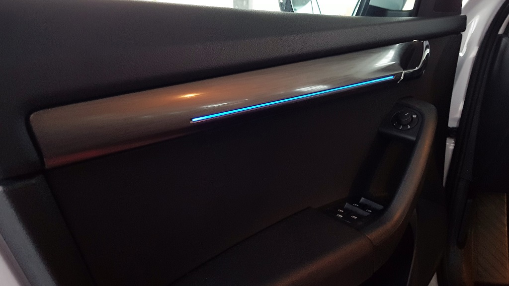 Los acabados del Skoda Octavia nos han parecido correctos, aunque con algunos materiales algo menos nobles en ciertos puntos y con aspecto sobre todo muy sobrio y funcional. Se escapa a esta sobriedad la iluminación LED de las puertas de la que podemos cambiar el color. Por lo demás muchos detalles prácticos con múltiples papeleras y zonas para la colocación de objetos tanto en las plazas delanteras como las traseras.