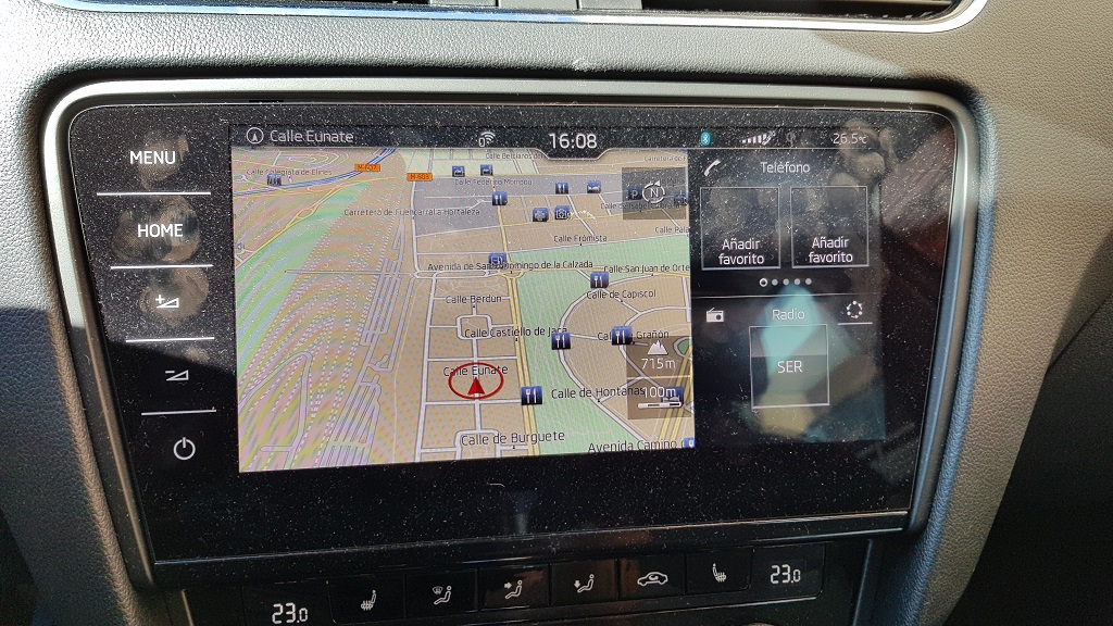 También es posible adquirir una versión que permita compartir una conexión a Internet la cual incorpora una tarjeta SIM. A través del sistema SmartGate el vehículo puede transmitir al móvil distintos parámetros del funcionamiento del coche que pueden ser visualizados y modificados con aplicaciones específicas de Skoda. Dentro del sistema de navegación tendremos además información de ruta, del tiempo, posibilidad de visualizar el mapa con Google Earth, importación de rutas y destinos, noticias… todo un ecosistema de información que complementa al excelente navegador.