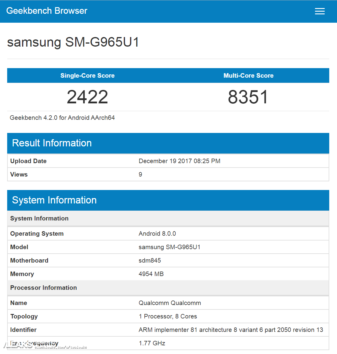 Una filtración aparecida en Geekbench nos ha permitido ver la que sería en teoría la primera prueba de rendimiento del Galaxy S9+, un terminal tope de gama que como sabemos será el «hermano mayor» del Galaxy S9 de Samsung.