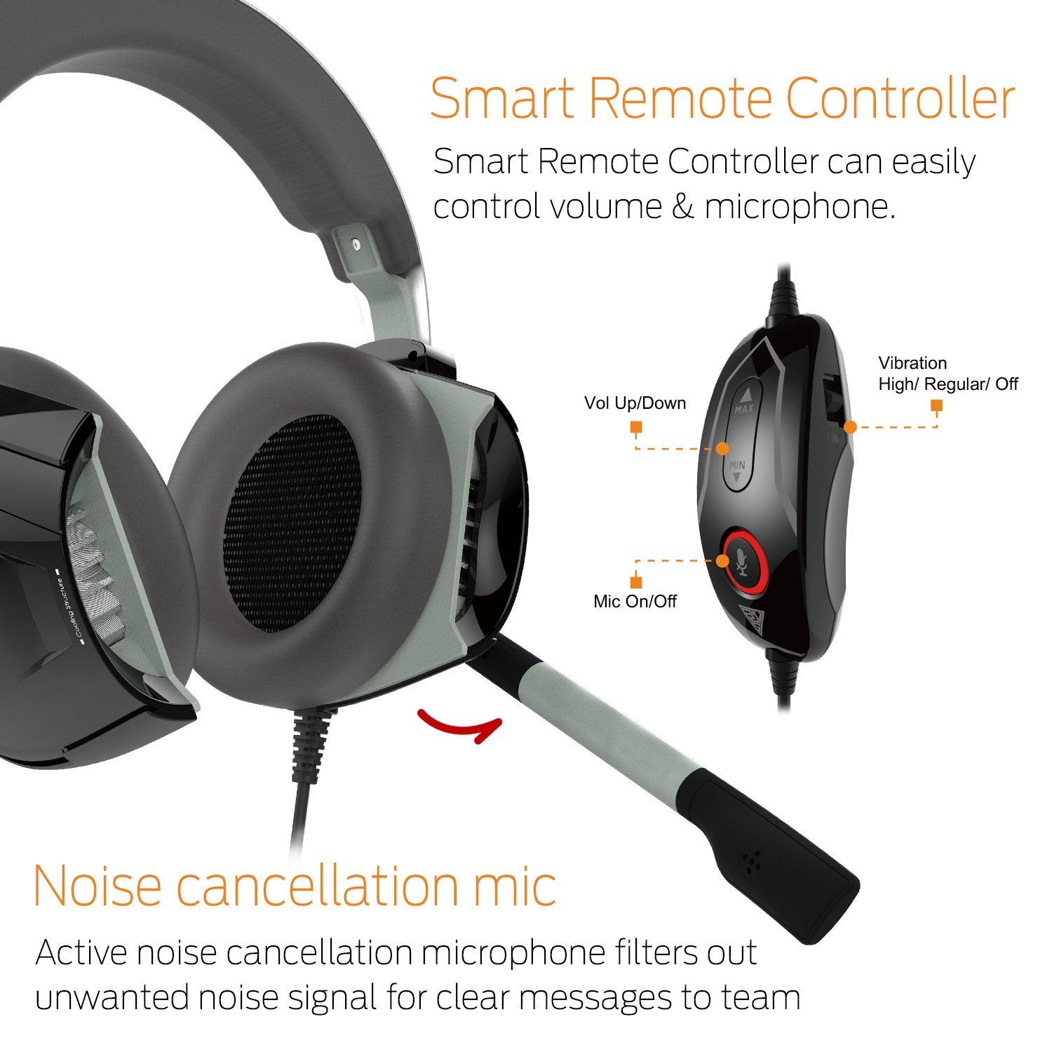 El sistema de control de volumen está integrado en una especie de mando que recuerda al que podemos encontrar en los altavoces para PC e integra un botón para silenciar el micrófono. Es fácil de utilizar pero muy grande y puede resultar incómodo en ciertas configuraciones y escritorios.