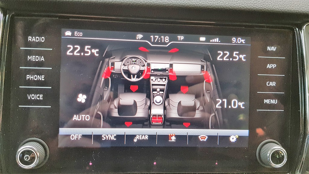 Como ya vimos en otros modelos de Skoda el sistema es excelente, hereda el espíritu de practicidad de la filosofía checa con menús entendibles, opciones siempre a mano y todas las funciones que se puedan requerir de un sistema de este tipo. Si acaso el lunar de optar por botones táctiles en vez de los tradicionales dificulta el uso si no estamos mirando directamente a la pantalla pero por lo demás encontramos opciones novedosas como la posibilidad de controlar en pantalla el sistema de ventilación.