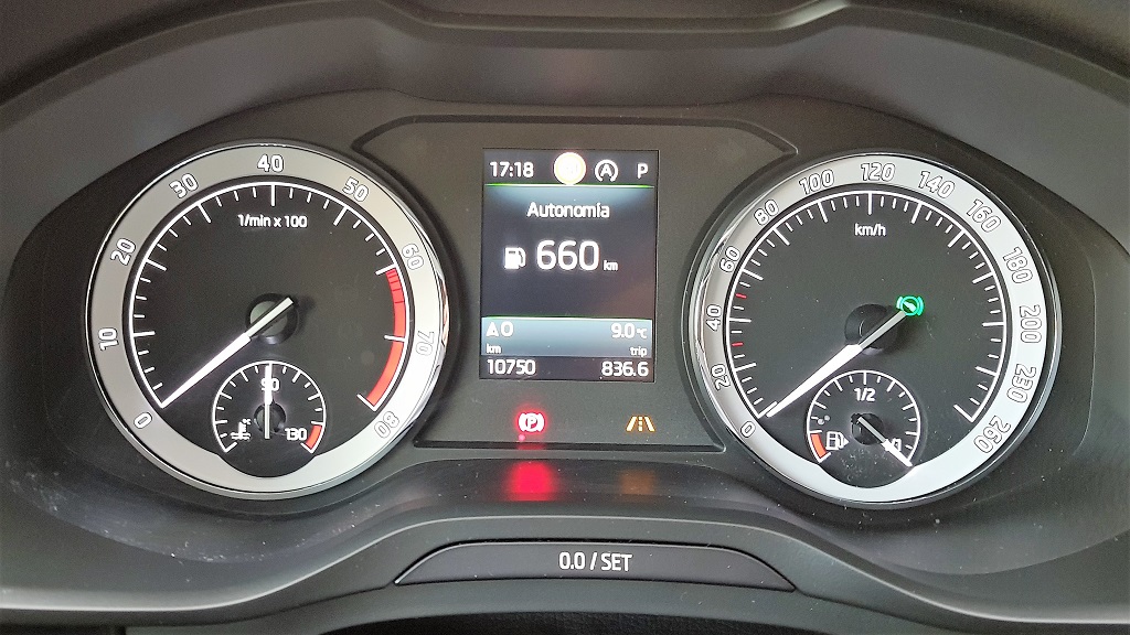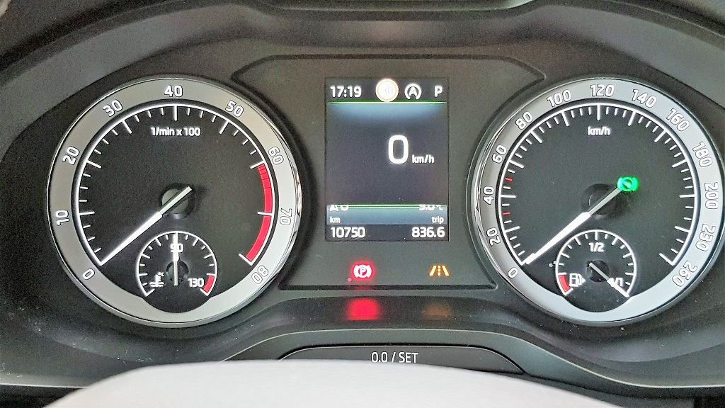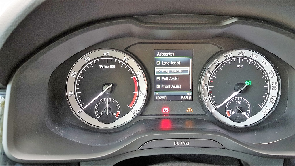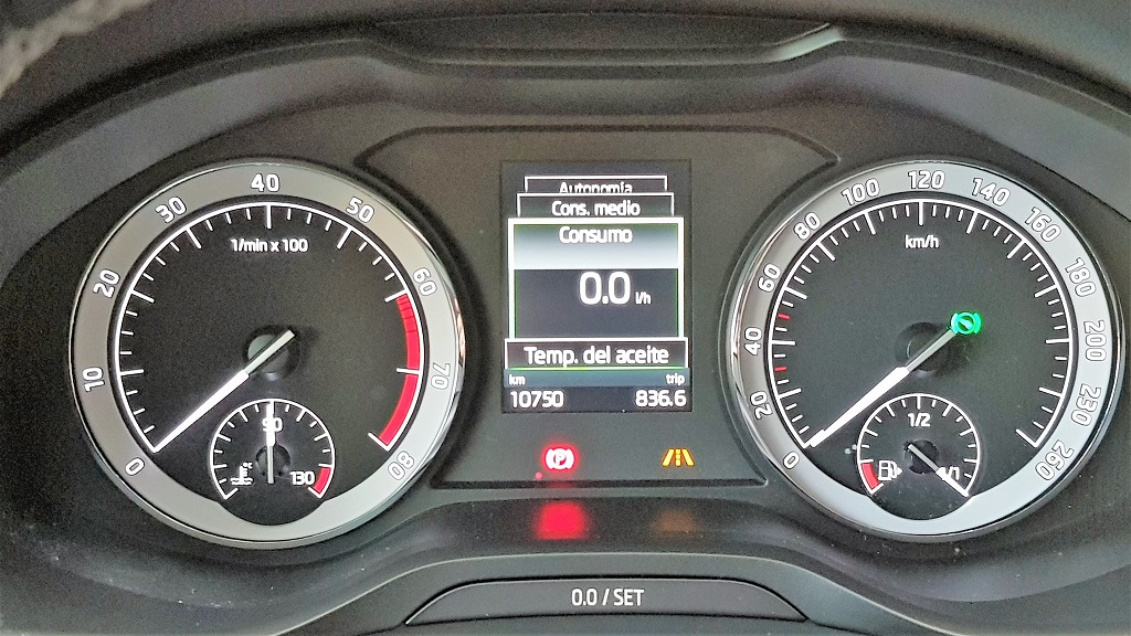 La sobriedad también se nota en la zona de indicadores tras el volante, que es idéntica a la que encontramos por ejemplo en el Superb: un cuentarrevoluciones y un cuentakilómetros con sui aguja de toda la vida mientras que en el centro encontramos una discreta pantalla LCD para mostrar información adicional. Eso sí, en el centro del salpicadero encontramos la generosa pantalla de 8 pulgadas que equipa el excelente sistema de información y entretenimiento con sistema Skoda Connect compatible con Android Auto y Apple CarPlay.