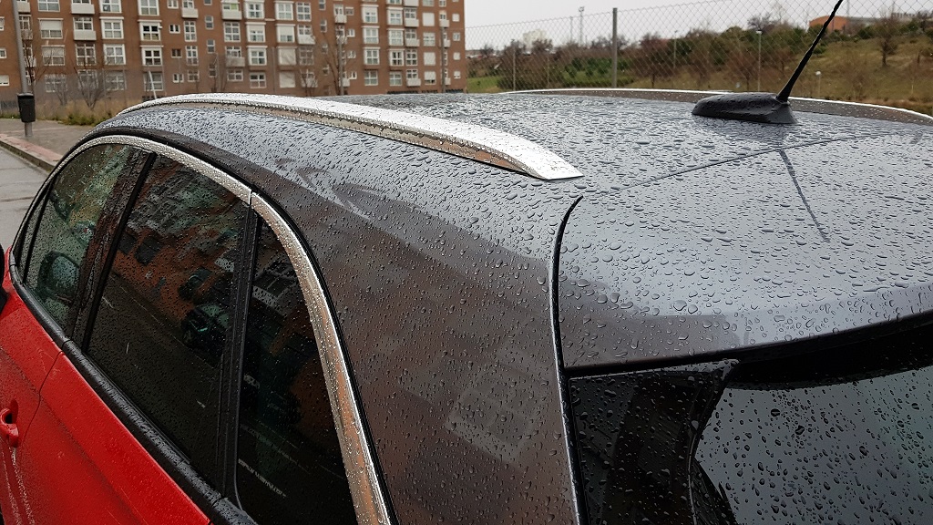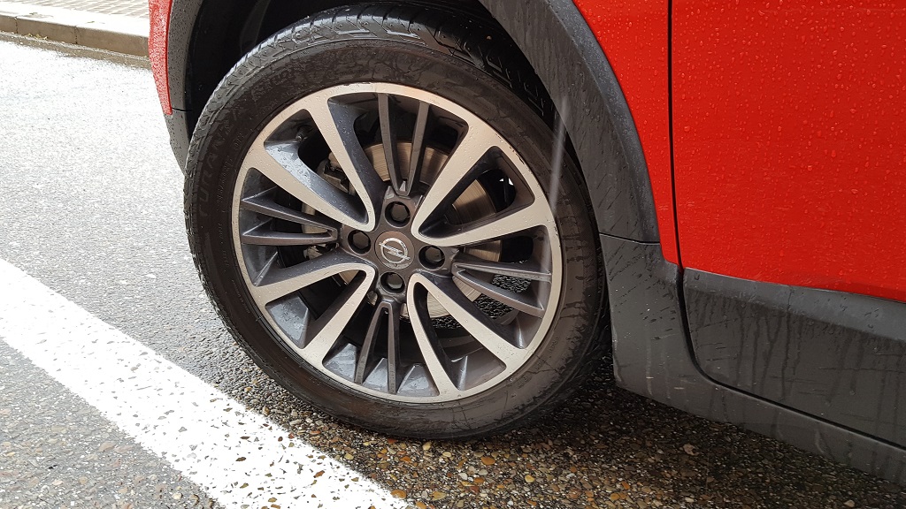 El caso es que el Crossland X no es un coche vistoso, más emparentado en aspecto con un monovolumen que con un todoterreno ya que la altura desde el suelo no es demasiado elevada y la distancia entre ejes es muy grande, los pasos de rueda quedan muy cerca de los límites de la carrocería. Resalta la posibilidad de personalización de los colores de la carrocería, en nuestro caso combinando el color rojo con el color negro de los pilares y el techo todo rematado con la parte inferior de la carrocería rematada con defensas en plástico negro lo que proporciona un look deciodidamente urbano.
