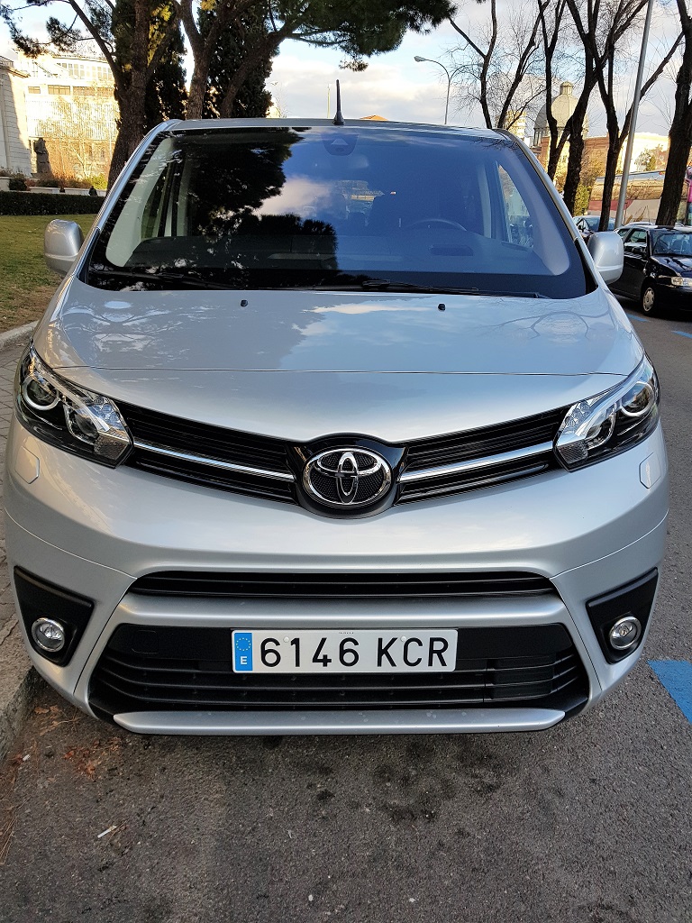 En nuestro caso nos hemos adentrado en el mundo de las furgonetas de la mano de Toyota ya que hemos tenido la suerte de probar la más sofisticada del fabricante japonés Toyota: la Proace Verso destinada al transporte de personas. En este caso y aunque la filosofía de «caja sobre ruedas» se mantiene, la parte delantera del ProAce tiene una línea más refinada que la de otras opciones. De hecho si nos fijamos en el frontal podría pasar por un SUV moderno, con una parrilla alargada y estilizada, luces antiniebla sobre embellecedores negros, grupos ópticos estilizados y alargados y un muy generoso parabrisas.
