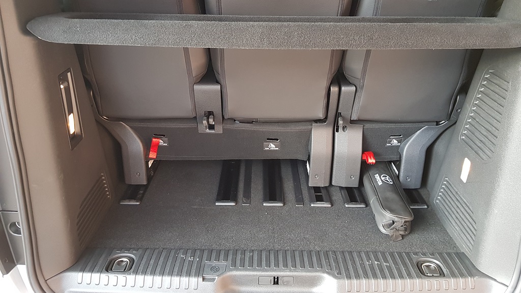 La tercera fila también dispone de asientos individuales, aunque están colocados más juntos que en la segunda fila son suficientemente amplios y disponen de sujección lateral. En general todos los asientos de pasajeros son extremadamente cómodos y preparados para largos viajes o recorridos por ciudad. Hay espacio de sobra para las piernas y pueden acomodarse pasajeros de estatura considerable.