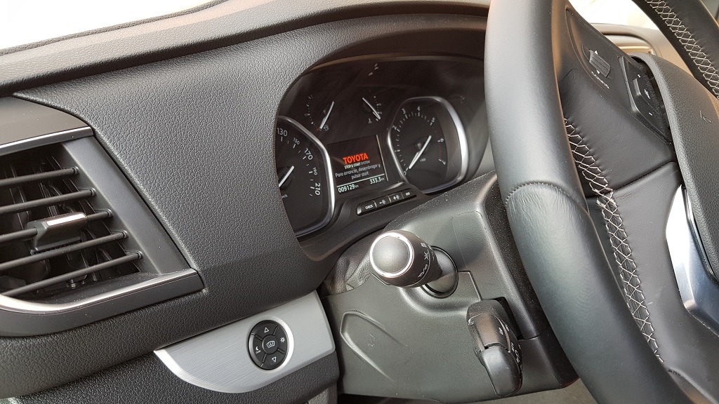 La pantalla multimedia y de información es de siete pulgadas y se encuentra colocada en una cómoda posición elevada que permite no apartar la vista de la carretera. Nos ha parecido que la pantalla es de inferior calidad con respecto a otros modelos de Toyota, pero por otro lado el funcionamiento de los controles multimedia, el GPS y la gestión de información del resto de sistemas del coche es muy bueno. Además de estas dos pantallas el modelo probado dispone de un HUD, una pequeña pantalla que sobresale por encima del salpicadero en la zona del volante sobre la que se proyecta información sobre velocidad, indicaciones de la navegación y otras.