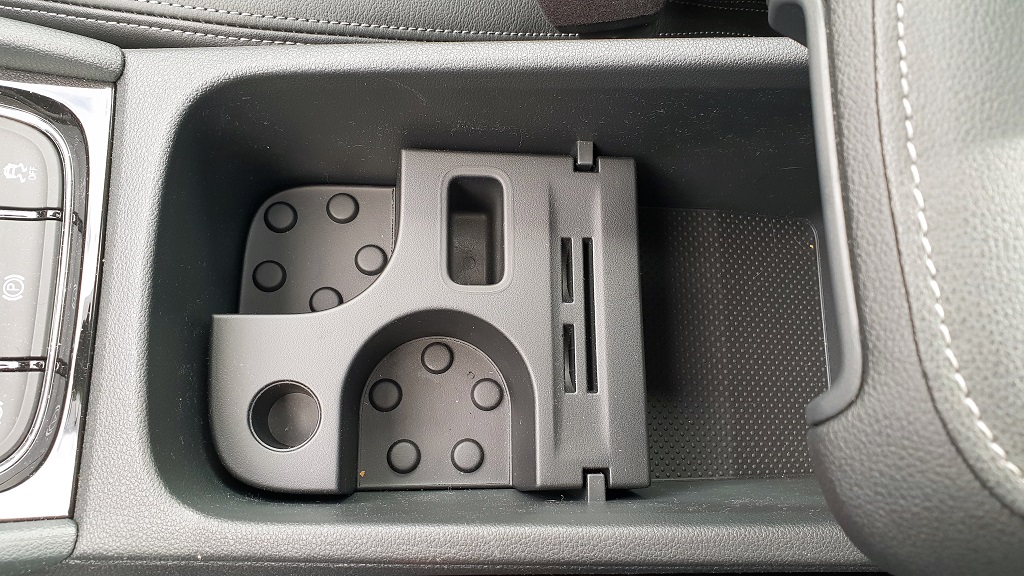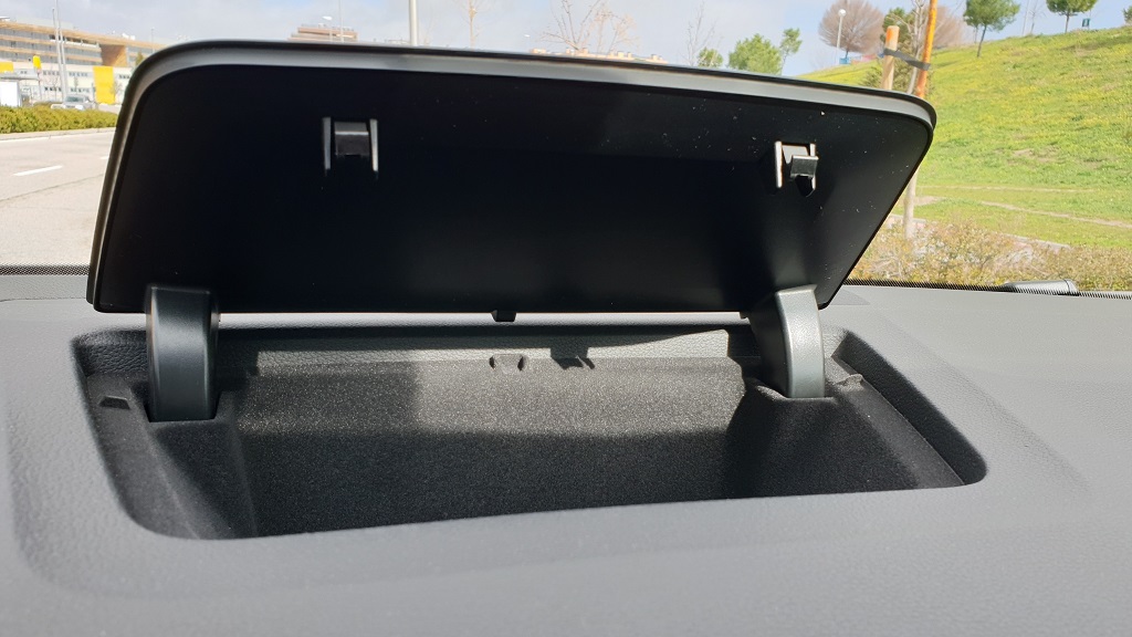 Otra de las inevitables señas de identidad de Skoda es el cuidado en colocar suficientes y capaces espacios portaobjetos. En el Karoq encontramos un gran espacio en el reposabrazos con una pieza de plástico retirable que permite colocar botellas pequeñas, espacios en las puertas para botellas y objetos grandes, una guantera de buen tamaño y el tradicional espacio para dejar el móvil delante de la palanca con conectores para carga y posibilidad de carga por inducción. También hay un espacio con tapa en la parte superior del salpicadero en la que guardar por ejemplo gafas de sol.