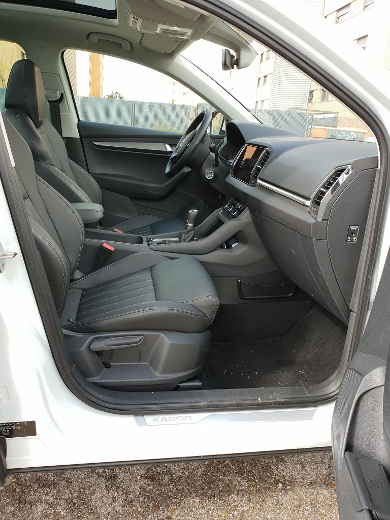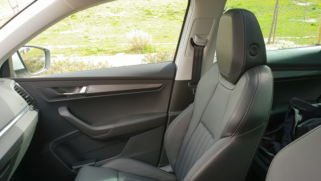 Una vez abierta la puerta del Karoq nos encontramos en territorio conocido. La mencionada astucia de Skoda para jugar con acabados y materiales da en el clavo con este modelo ya que la impresión es estar dentro de un coche de categoría. Contribuyen también unos asientos de cuero sintético bien rematados y con un tacto muy agradable con un diseño atractivo que por si fuera poco recoge muy bien la espalda. Nuevo elemento que abunda en esa habilidad de Skoda para sacar partido a los detalles para dar buena imagen pero también buen servicio.