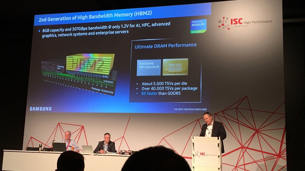 La memoria HBM2 generó una gran expectación por las posibilidades que ofrece aplicada a tarjetas gráficas tanto de consumo general como para el sector profesional. Dependiendo de la configuración establecida puede llegar a ofrecer un ancho de banda de hasta 1,2 TB/s, gracias a los avances que ha conseguido Samsung con Aquabolt, considerada como una segunda generación de memoria HBM2.