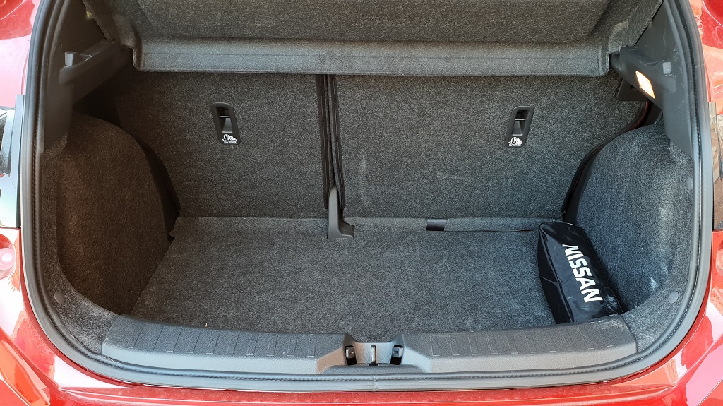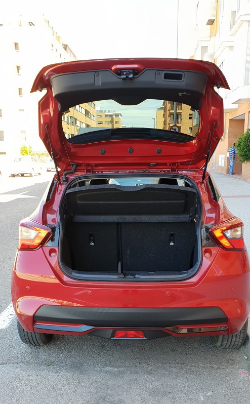 El maletero del Micra tiene una capacidad suficiente. Los 300 litros de los que dispone estáne en línea con la capacidad que suelen tener los modelos de este segmento y esta se puede aumentar abatiendo los asientos en el formato clásico de 60/40. Como el coche es corto no es posible que quede una superficie plana al abatirlos pero el espacio resultante nos permite transportar objetos bastante grandes. Echamos en falta algunas soluciones ingeniosas que hemos visto en otros coches para que el maletero sea más práctico, pero por lo demás el acceso es cómodo y el volumen bastante regular.