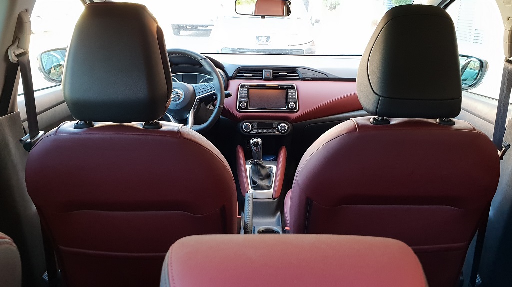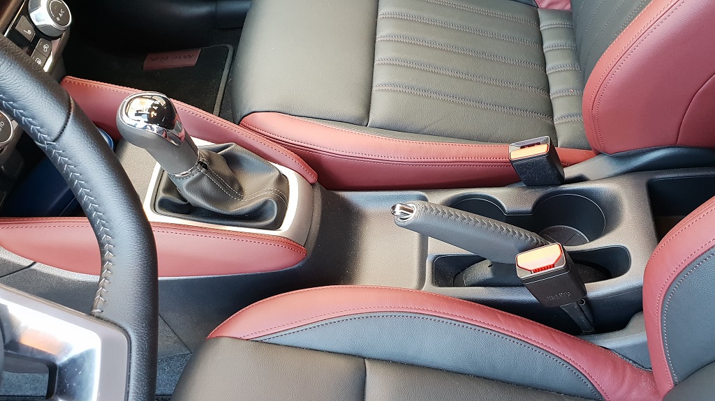 Al acceder al interior nos llevamos una agradable sorpresa. Los asientos tienen una consistencia y dureza ideal, ni muy mullidos ni demasiado duros con una buena sujección lumbar y apoyo de la cabeza incluso con cierta altura. Por otro lado el diseño de interior es moderno y agradable, mantiene los dos colores de la carrocería (rojo y negro) con multitud de detalles en cuero como en el túnel central en la zona del cambio de marcha con costuras y un tacto agradable en general. Tanto en la puerta como el salpicadero también encontramos detalles en cuero en color rojo alternando con plásticos de un buen tacto.