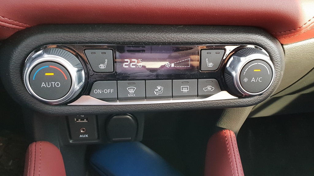 Los controles de climatización se encuentran justo debajo de la pantalla del sistema concentrados en una franja y muy fáciles de accionar con dos mandos individuales para las dos zonas de climatización y botones para la función de antivaho. Al disponer de asientos de cuero también ofrece un botón con dos intensidades para el calentamiento de los asientos. A destacar el sistema de sonido Bose de buena calidad, que queda algo deslucido cuando revolucionamos mucho el motor y el ruido del mismo entra en el habitáculo. Curioso el sistema de altavoces en los reposacabezas.