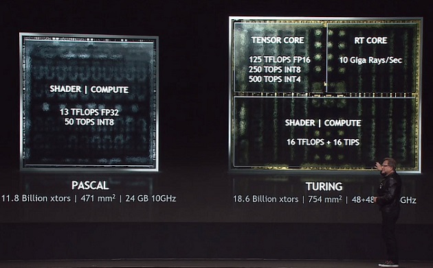 En este caso tenemos por tanto dos especializaciones fundamentales: el subsistema para IA y aprendizaje profundo y el subsistema para trazado de rayos. Ya hemos visto que la especialización puede marcar una gran diferencia y en este caso no estamos ante una excepción. Los núcleos ténsor presentes en la Tesla V100 de NVIDIA alcanzaban picos de 125 TFLOPs y los núcleos RTX para trazado de rayos impulsan el rendimiento para ofrecer una mejora de hasta x25 frente a Pascal.