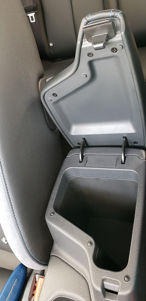 Entre los dos asientos encontramos un reposabrazos con un hueco portaobjetos profundo pero no demasiado aprovechable. No hay demasiados huecos para almacenar objetos aparte del que hemos mencionado y en la parte inferior de la consola central el espacio para el teléfono móvil es algo pequeño para las nuevas generaciones de smartphones. El cambio es evidentemente automático y el selector, colocado en la parte central, es un simple selector.
