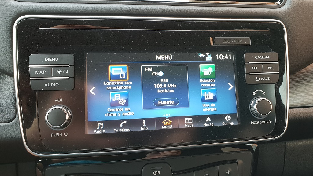 La mejora que más nos ha gustado en este nuevo modelo es que se ha aumentado la amortiguación del ruido ambiente. Así un coche que ya de por sí es muy silencioso como el Leaf ahora lo es más aún y aunque el aislamiento no es tan eficaz como el de un Tesla Model S el silencio es notable y permite disfrutar de la música, como la que en nuestro caso emite el excelente sistema de sonido Bose que equipa el nivel de acabado más alto.