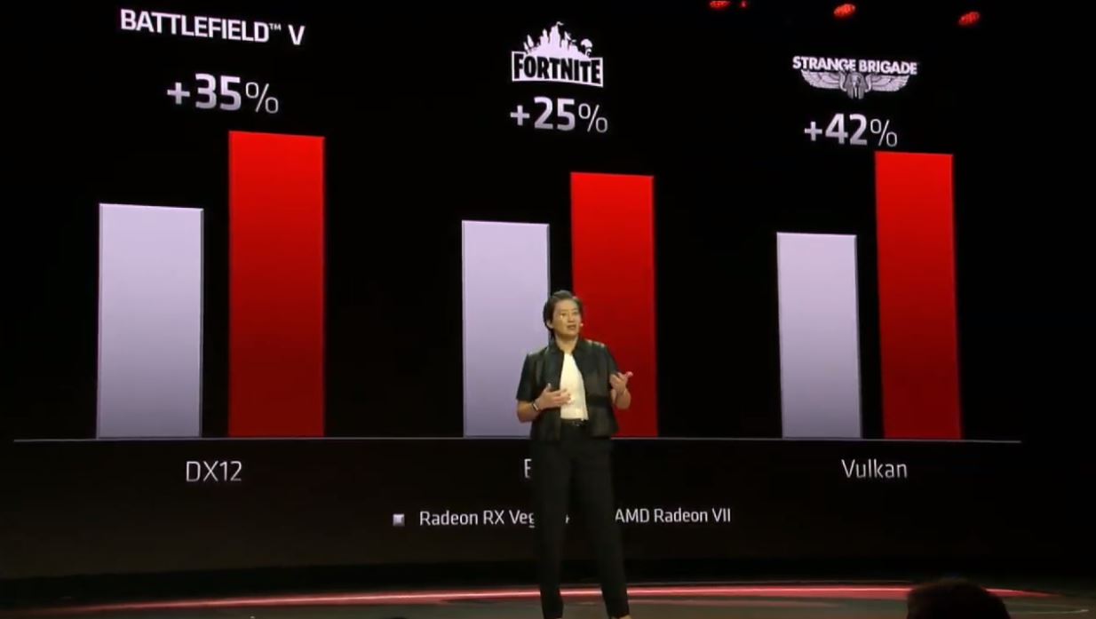 La Radeon VII cuenta con 60 unidades de computación, lo que se traduce en un total de 3.840 shaders. Para que os hagáis una idea la Radeon RX Vega 56 cuenta con 3.584 shaders, y la Radeon RX Vega 64 suma 4.096 shaders. Gracias a las mejoras a nivel de arquitectura y al salto al proceso de 7 nm AMD asegura que esta nueva tarjeta gráfica puede ofrecer hasta un 25% más de rendimiento manteniendo el mismo consumo energético que la Radeon RX Vega 64.